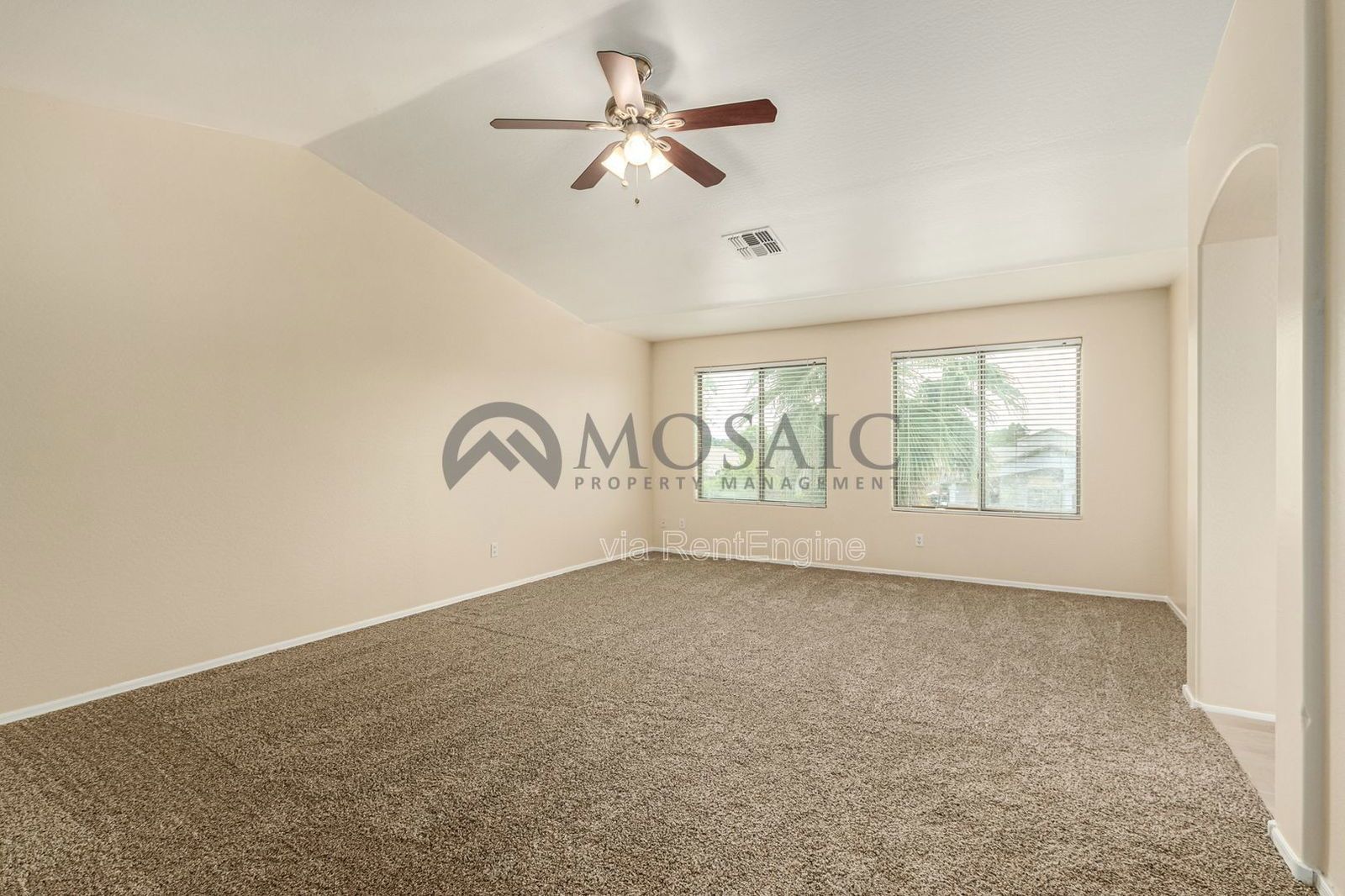 At nearly 3000 SF this STUNNING 5 bed/3.5 bath home has an abundance of room for the entire family! Upon entry you will notice the high ceilings, posh, marbled porcelain tile, and appealing two-tone paint throughout. The light and bright kitchen boasts grey cabinetry with kitchen island, white quartz countertops and stainless appliances. On the main floor there is a bedroom and full bath, perfect for overnight guests. Upstairs, the owner's suite with dual vanity, walk in shower, separate tub and 3 additional bedrooms. The upstairs landing also features additional cabinet/storage space. Wait until you see the size of the backyard with built in BBQ, extended patio and grassy area! Washer and dryer is included. The community of Fletcher Farms offers beautiful green belts and walking/biking paths. Make this one yours today!