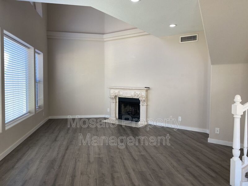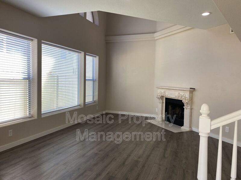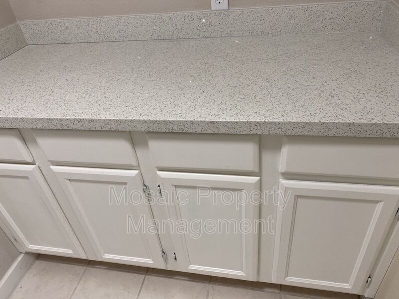 Enjoy gorgeous tile flooring and a kitchen featuring quartz countertops, stainless steel appliances, and a breakfast bar that opens to the private patio—perfect for morning coffee or evening relaxation. The spacious living room offers a cozy wood-burning fireplace, ideal for gathering and entertaining.