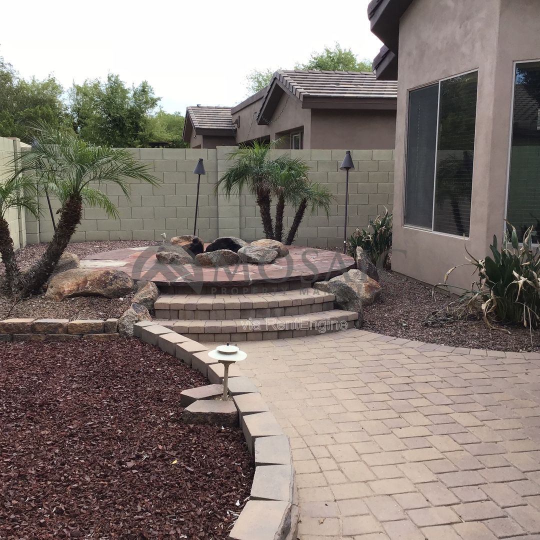 Front yard landscaping is maintained by the HOA, and the backyard landscaping is included in rent.