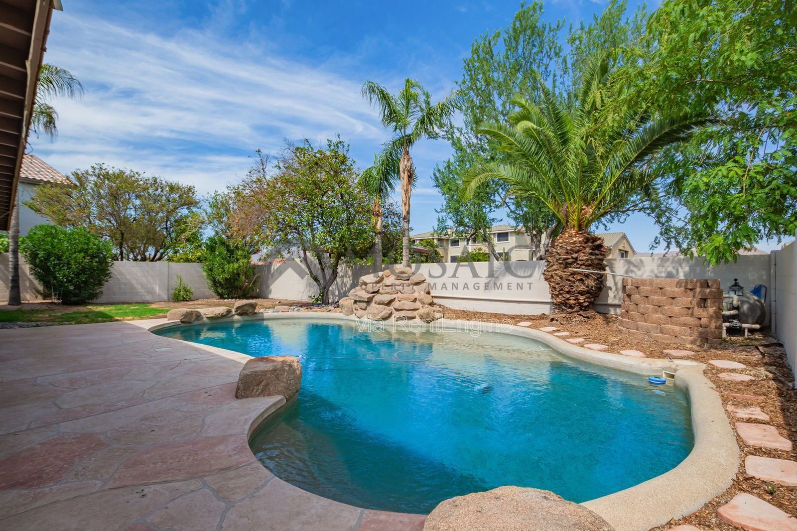 This astounding 4 bed 2 bath will not disappoint with tons of natural light, granite countertops, and a spacious floor plan. The vaulted ceilings open up the home. The open kitchen offers a center island, oak cabinets, black appliances and gorgeous granite countertops. A separate den provides a nice flex space as an office, gym or play room! The main suite offers the perfect getaway with private access to the backyard, separate shower and tub and dual vanity. Enjoy desert living at its finest with your backyard oasis featuring sparkling pool with beautiful waterfall, extended covered patio and lush landscaping. Do not miss out on this Scottsdale gem!