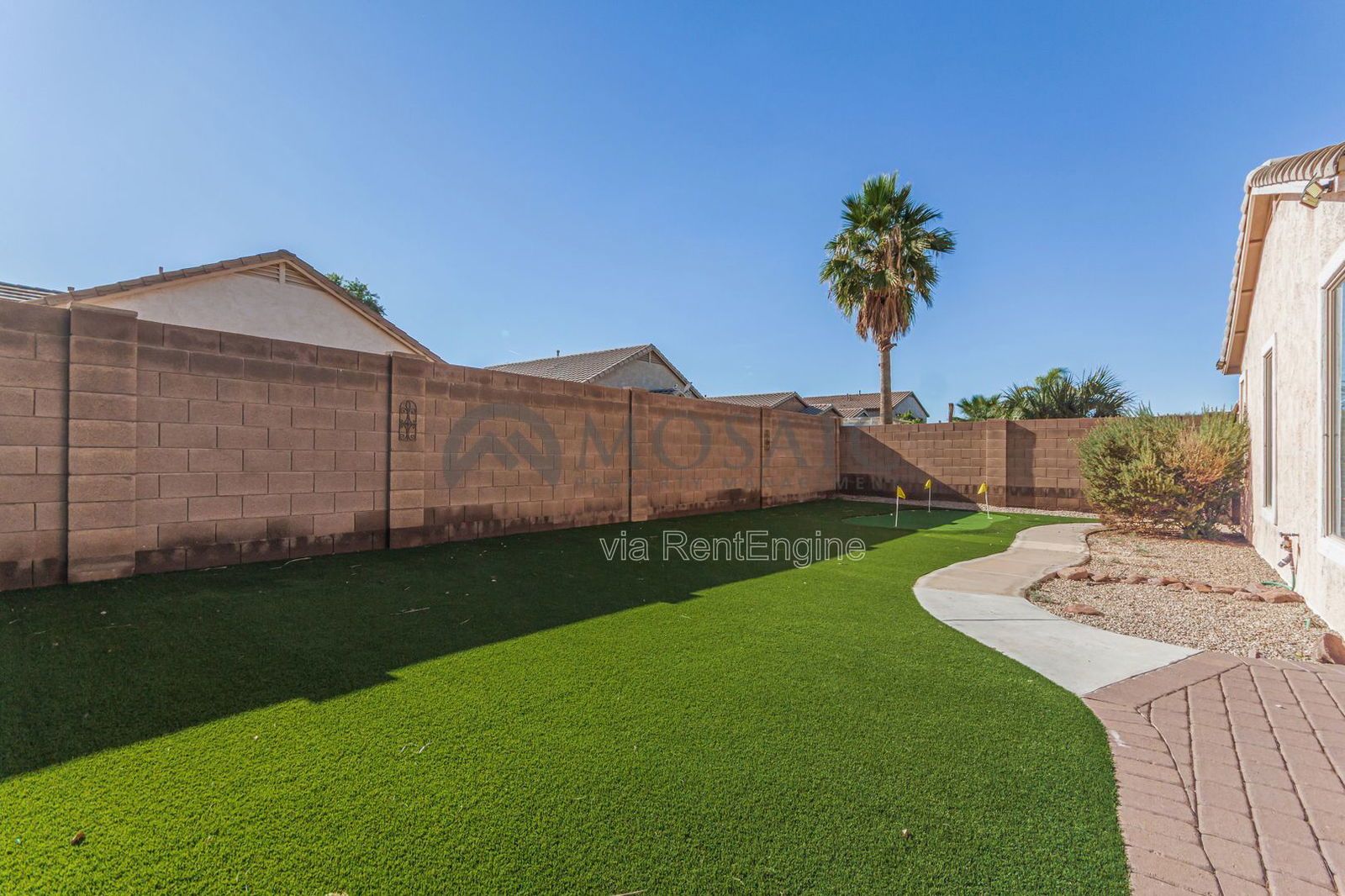 The kitchen features ample counter space and the living areas are open and bright with plenty of room for entertaining! Low maintenance landscaping plus a private backyard surrounded by single stories and a covered patio! The backyard also features a putting green!