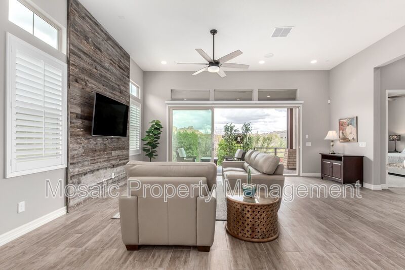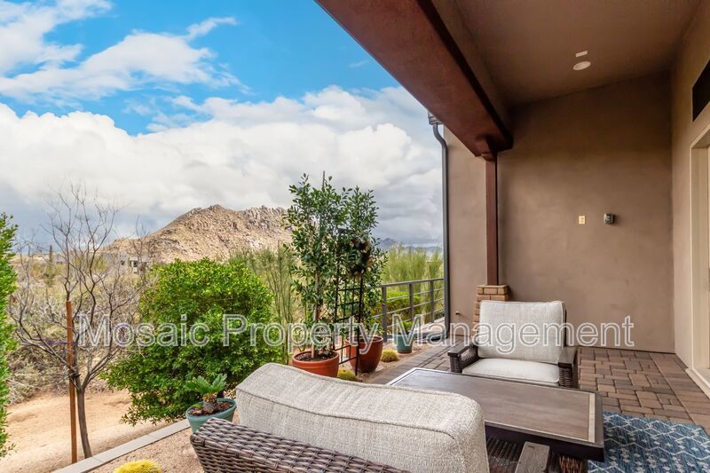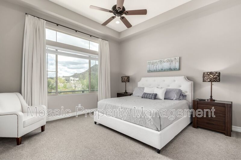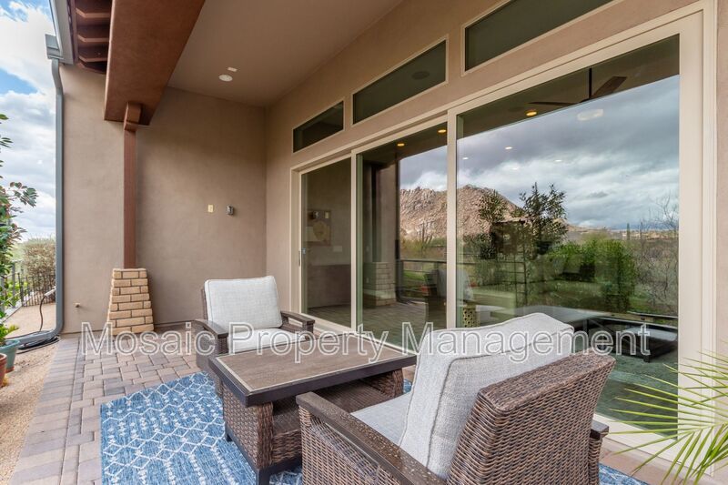 Nestled on a premium lot with stunning panoramic views of Pinnacle Peak and Troon Mountain, this beautifully furnished home is move-in ready. Impeccably maintained, it blends luxury and comfort to create the ideal high desert retreat. The open-concept floor plan boasts soaring 12' ceilings in the great room, where expansive multi-slide glass doors seamlessly connect the indoor living space to the outdoor covered patio, perfect for enjoying the breathtaking scenery.