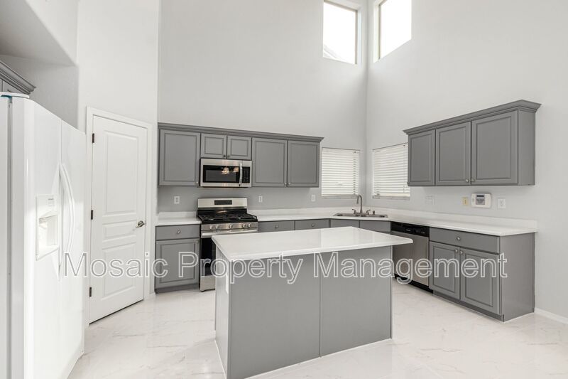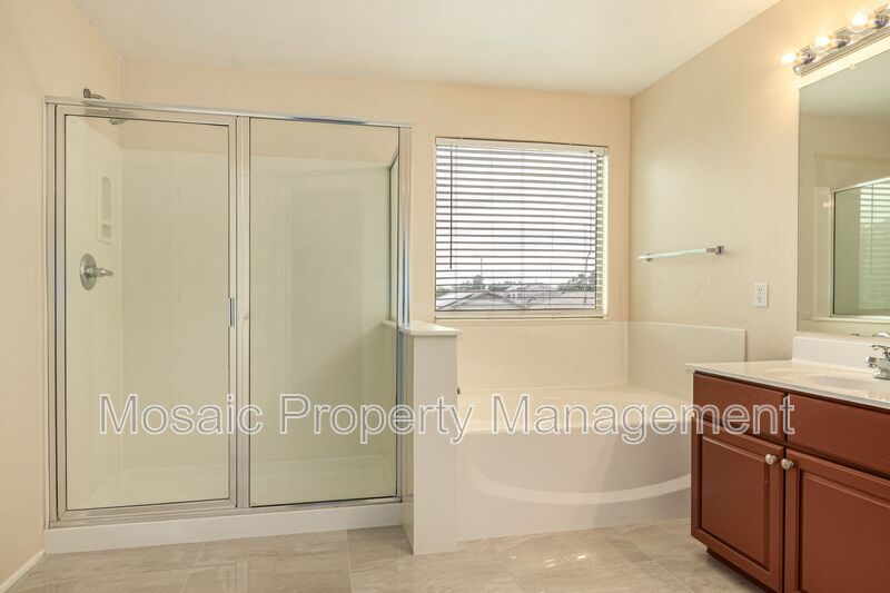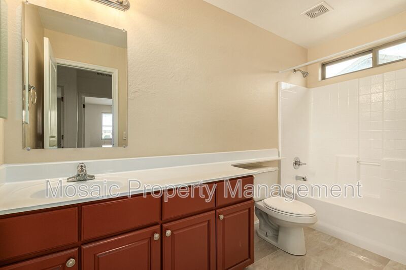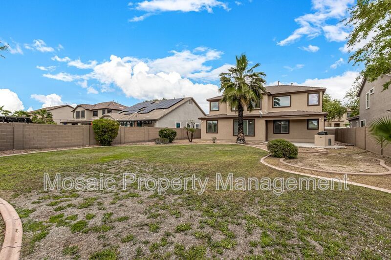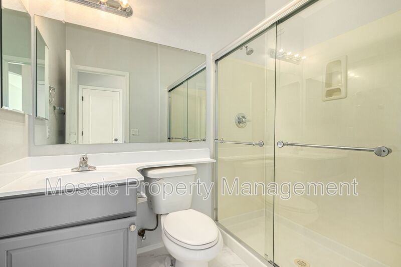 At nearly 3000 SF this STUNNING 5 bed/3.5 bath home has an abundance of room for the entire family! Upon entry you will notice the high ceilings, posh, marbled porcelain tile, and appealing two-tone paint throughout. The light and bright kitchen boasts grey cabinetry with kitchen island, white quartz countertops and stainless appliances. On the main floor there is a bedroom and full bath, perfect for overnight guests. Upstairs, the owner's suite with dual vanity, walk in shower, separate tub and 3 additional bedrooms. The upstairs landing also features additional cabinet/storage space. Wait until you see the size of the backyard with built in BBQ, extended patio and grassy area! Washer and dryer is included. The community of Fletcher Farms offers beautiful green belts and walking/biking paths. Make this one yours today!
