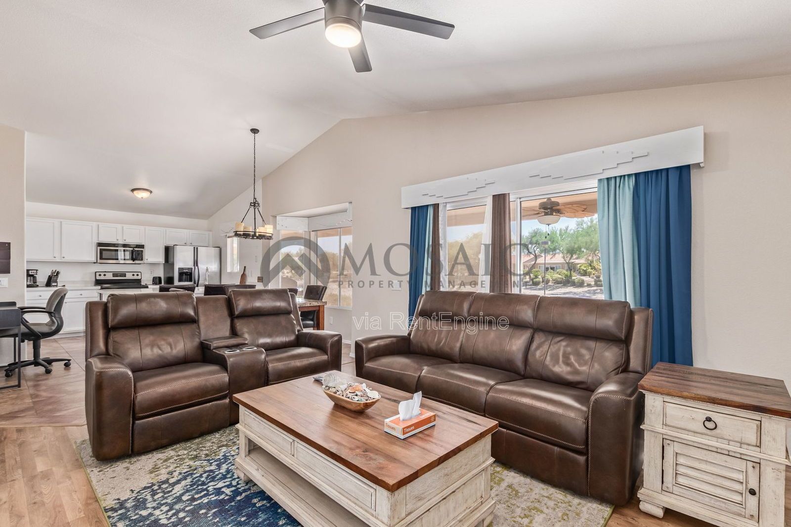 Welcome Home! This 2 bedroom 2 bath home in the Sunbird Golf Resort neighborhood of Chandler is fully furnished and is a premier 55 Plus Community. The kitchen has all stainless steel appliances, granite countertops, and sleek white cabinets with tons of storage. Tile and wood laminate flooring throughout, no carpet. Relax in the master bath walk in shower. Full size front loading washer and dryer are included. One car garage has a full wall of storage cabinets to keep your garage organized. The backyard features a covered patio with views of the lush community landscaping. Don't forget about all the resort style community amenities: Community guard gate, large community pool, golf course, pickle ball court, tennis court, community clubhouse, restaurant, and more.